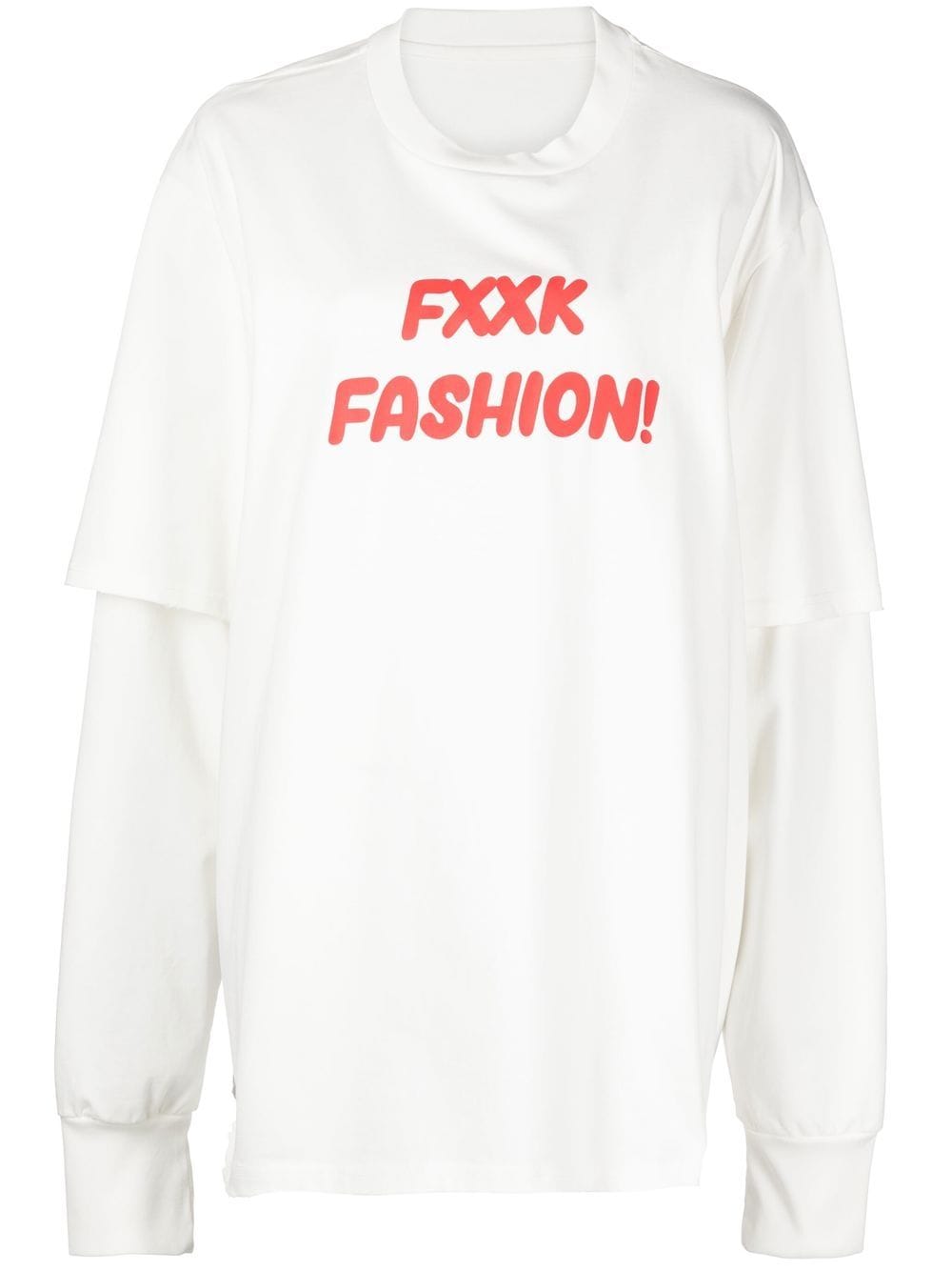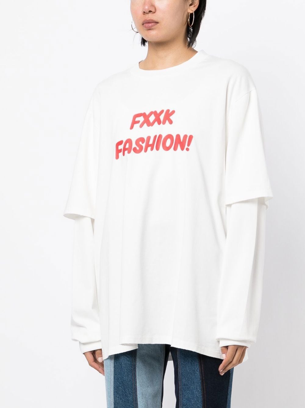 Slogan-print 2 Layers Long-sleeve T-shirt